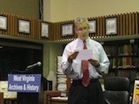 Buddie Curnutte, Rosie speaking to Rolling Thunder Hurricane, WV, May 25, 2016